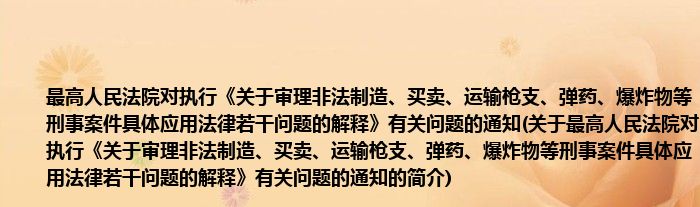 本文关于最高人民法院对执行《关于审理非法制造、买卖、运输枪支、弹药、爆炸物等刑事案件具体应用法律若干问题的解释》有关问题的通知的简介就讲解完毕,希望对大家有所帮助。