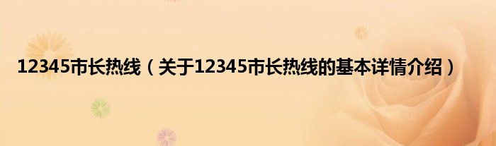本文关于12345市长热线的基本详情介绍就讲解完毕,希望对大家有所帮助。