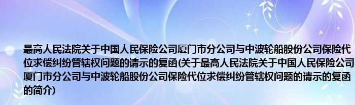 本文关于最高人民法院关于中国人民保险公司厦门市分公司与中波轮船股份公司保险代位求偿纠纷管辖权问题的请示的复函的简介就讲解完毕,希望对大家有所帮助。