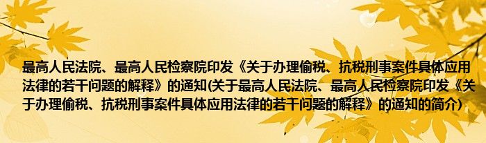 本文关于最高人民法院、最高人民检察院印发《关于办理偷税、抗税刑事案件具体应用法律的若干问题的解释》的通知的简介就讲解完毕,希望对大家有所帮助。