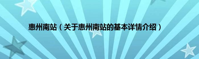 本文关于惠州南站的基本详情介绍就讲解完毕,希望对大家有所帮助。