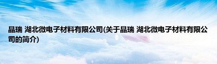 晶瑞 湖北微电子材料有限公司(关于晶瑞 湖北微电子材料有限公司的简介)