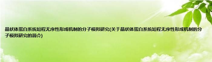 本文关于晶状体蛋白系统短程无序性形成机制的分子模拟研究的简介就讲解完毕,希望对大家有所帮助。