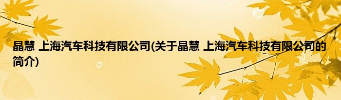 本文关于晶慧 上海汽车科技有限公司的简介就讲解完毕,希望对大家有所帮助。