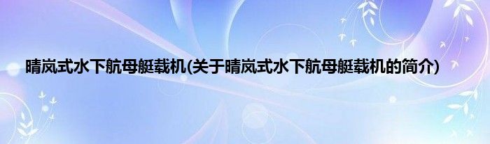 大家好,晴岚式水下航母艇载机,关于晴岚式水下航母艇载机的简介很多人还不知道,现在让我们一起来看看吧!