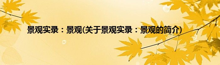本文关于景观实录:景观的简介就讲解完毕,希望对大家有所帮助。