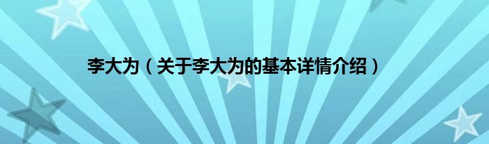 本文关于李大为的基本详情介绍就讲解完毕,希望对大家有所帮助。