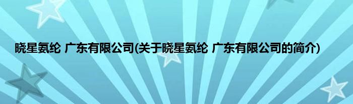 本文关于晓星氨纶 广东有限公司的简介就讲解完毕,希望对大家有所帮助。