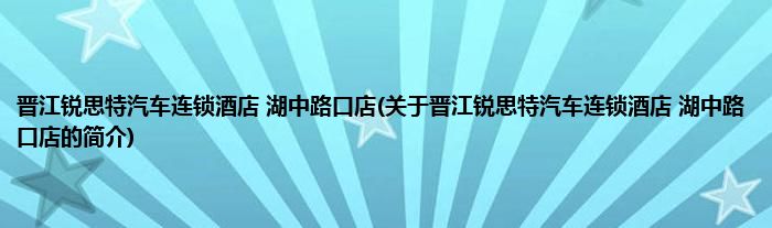 本文关于晋江锐思特汽车连锁酒店 湖中路口店的简介就讲解完毕,希望对大家有所帮助。