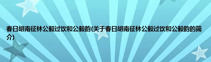 春日胡南征林公毅过饮和公毅韵(关于春日胡南征林公毅过饮和公毅韵的简介)