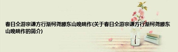春日仝游宗谦方行渐柯尧滕东山晚眺作(关于春日仝游宗谦方行渐柯尧滕东山晚眺作的简介)