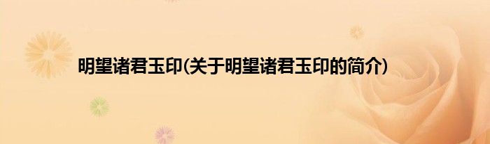 本文关于明望诸君玉印的简介就讲解完毕,希望对大家有所帮助。