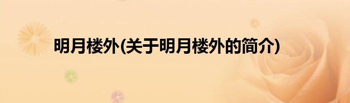 本文关于明月楼外的简介就讲解完毕,希望对大家有所帮助。