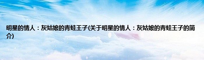 本文关于明星的情人:灰姑娘的青蛙王子的简介就讲解完毕,希望对大家有所帮助。