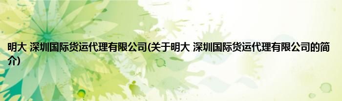 本文关于明大 深圳国际货运代理有限公司的简介就讲解完毕,希望对大家有所帮助。