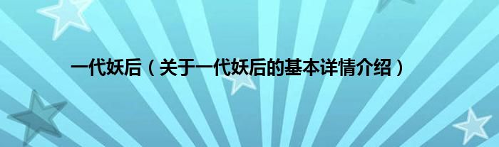本文关于一代妖后的基本详情介绍就讲解完毕,希望对大家有所帮助。