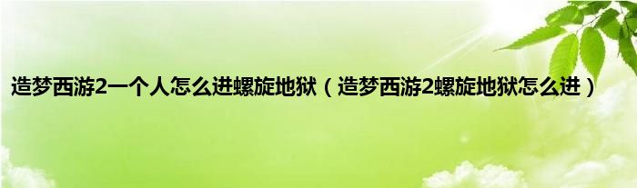 造梦西游2一个人怎么进螺旋地狱(造梦西游2螺旋地狱怎么进)