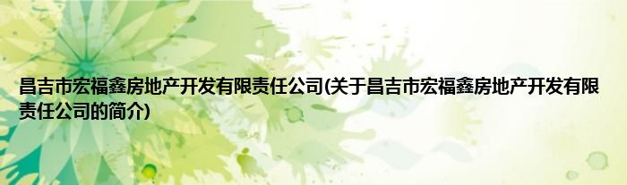 本文关于昌吉市宏福鑫房地产开发有限责任公司的简介就讲解完毕,希望对大家有所帮助。
