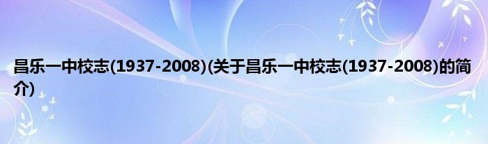 大家好,昌乐一中校志,1937-2008,关于昌乐一中校志,1937-2008的简介很多人还不知道,现在让我们一起来看看吧!