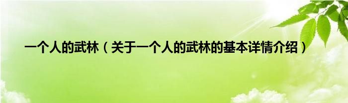 本文关于一个人的武林的基本详情介绍就讲解完毕,希望对大家有所帮助。
