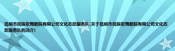 本文关于昆明市民族歌舞剧院有限公司文化志愿服务队的简介就讲解完毕,希望对大家有所帮助。