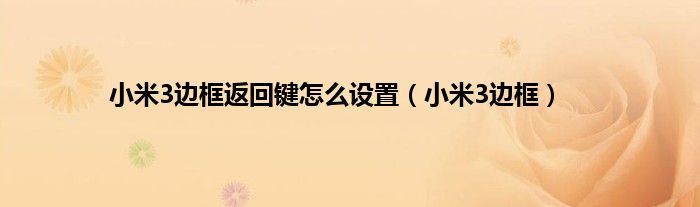 大家好,精选小编来为大家解答以上问题。小米3边框返回键怎么设置,小米3边框很多人还不知道,现在让我们一起来看看吧!