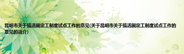 大家好,昆明市关于搞活固定工制度试点工作的意见,关于昆明市关于搞活固定工制度试点工作的意见的简介很多人还不知道,现在让我们一起来看看吧!