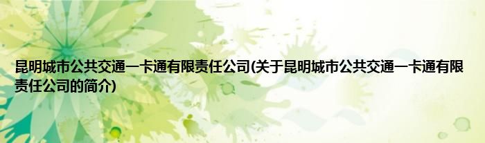 本文关于昆明城市公共交通一卡通有限责任公司的简介就讲解完毕,希望对大家有所帮助。