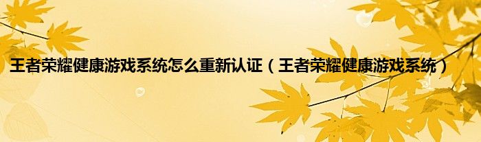 大家好,精选小编来为大家解答以上问题。王者荣耀健康游戏系统怎么重新认证,王者荣耀健康游戏系统很多人还不知道,现在让我们一起来看看吧!