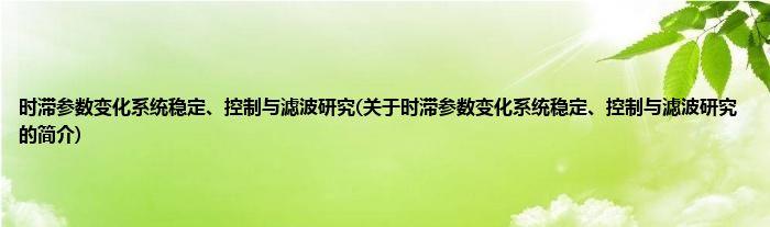 本文关于时滞参数变化系统稳定、控制与滤波研究的简介就讲解完毕,希望对大家有所帮助。