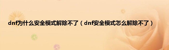 dnf为什么安全模式解除不了(dnf安全模式怎么解除不了)