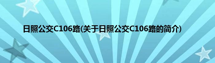 本文关于日照公交C106路的简介就讲解完毕,希望对大家有所帮助。