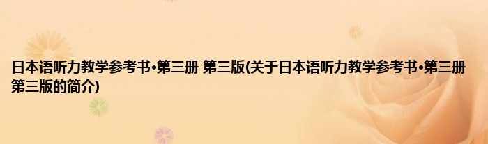 大家好,日本语听力教学参考书·第三册 第三版,关于日本语听力教学参考书·第三册 第三版的简介很多人还不知道,现在让我们一起来看看吧!