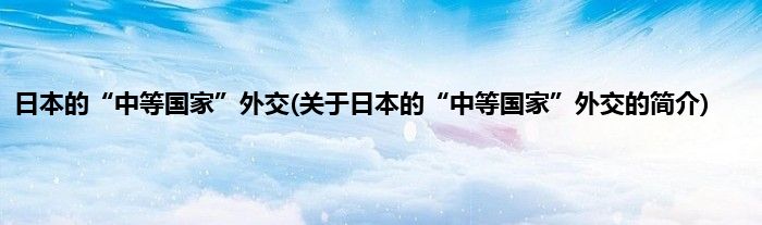 大家好,日本的“中等国家”外交,关于日本的“中等国家”外交的简介很多人还不知道,现在让我们一起来看看吧!