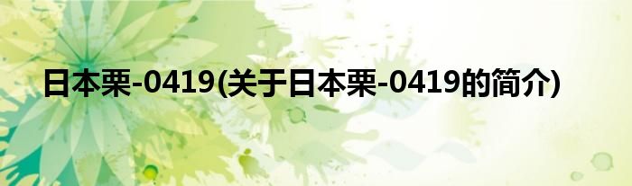 大家好,日本栗-0419,关于日本栗-0419的简介很多人还不知道,现在让我们一起来看看吧!