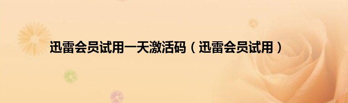 大家好,精选小编来为大家解答以上问题。迅雷会员试用一天激活码,迅雷会员试用很多人还不知道,现在让我们一起来看看吧!