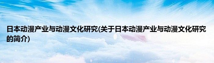 本文关于日本动漫产业与动漫文化研究的简介就讲解完毕,希望对大家有所帮助。