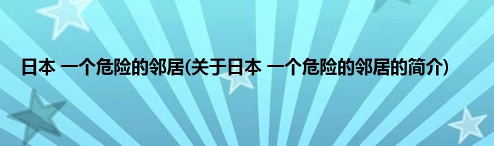 日本 一个危险的邻居(关于日本 一个危险的邻居的简介)