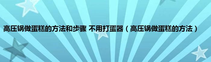 大家好,精选小编来为大家解答以上问题。高压锅做蛋糕的方法和步骤 不用打蛋器,高压锅做蛋糕的方法很多人还不知道,现在让我们一起来看看吧!