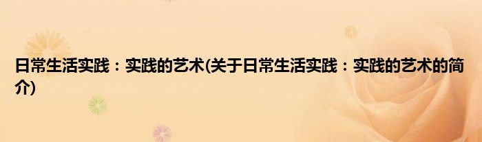 大家好,日常生活实践:实践的艺术,关于日常生活实践:实践的艺术的简介很多人还不知道,现在让我们一起来看看吧!