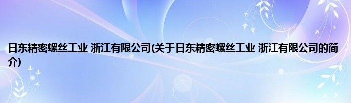 本文关于日东精密螺丝工业 浙江有限公司的简介就讲解完毕,希望对大家有所帮助。