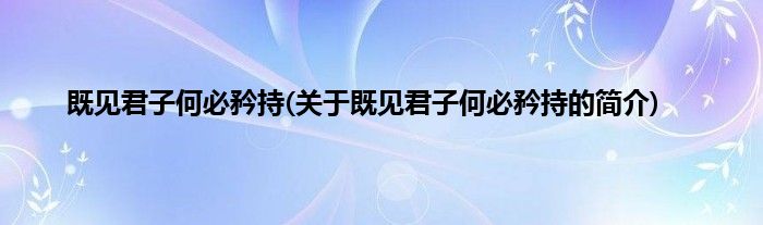 本文关于既见君子何必矜持的简介就讲解完毕,希望对大家有所帮助。