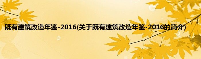 本文关于既有建筑改造年鉴-2016的简介就讲解完毕,希望对大家有所帮助。