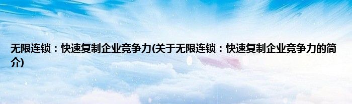 无限连锁:快速复制企业竞争力(关于无限连锁:快速复制企业竞争力的简介)