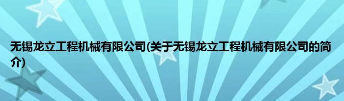 本文关于无锡龙立工程机械有限公司的简介就讲解完毕,希望对大家有所帮助。