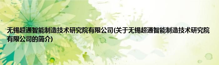 本文关于无锡超通智能制造技术研究院有限公司的简介就讲解完毕,希望对大家有所帮助。