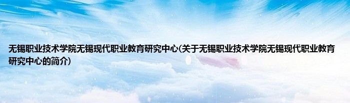 无锡职业技术学院无锡现代职业教育研究中心(关于无锡职业技术学院无锡现代职业教育研究中心的简介)