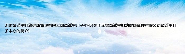 本文关于无锡童谣里妇幼健康管理有限公司童谣里月子中心的简介就讲解完毕,希望对大家有所帮助。