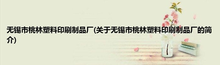 大家好,无锡市桃林塑料印刷制品厂,关于无锡市桃林塑料印刷制品厂的简介很多人还不知道,现在让我们一起来看看吧!