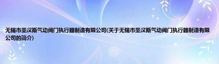 本文关于无锡市圣汉斯气动阀门执行器制造有限公司的简介就讲解完毕,希望对大家有所帮助。